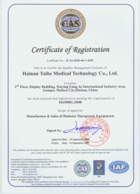 SC Hainan Taihe Stiinta si Tehnica Medicala SRL este certificata ISO 9001: 2000 , acest standard certificand clientilor